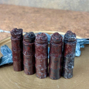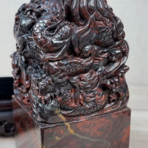 - 三色「劉關張」:紅、白、黑三色並存,被視為最名貴的雞血石品種,象徵義氣、力量與福運,是桂林雞血石的特色之一。