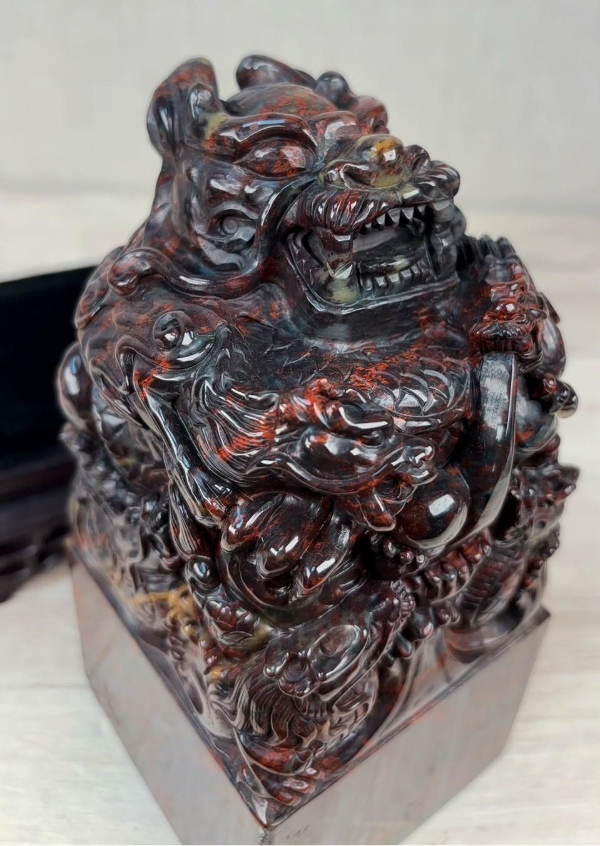 - 三色「劉關張」:紅、白、黑三色並存,被視為最名貴的雞血石品種,象徵義氣、力量與福運,是桂林雞血石的特色之一。